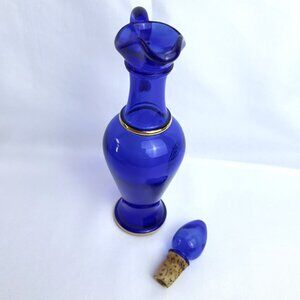 Avon Vintage Cobalt Blue Pitcher & Stopper Gold Accents Genie Bottle Cruet 1970s