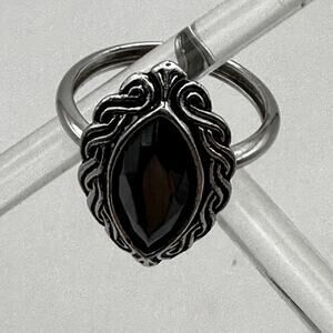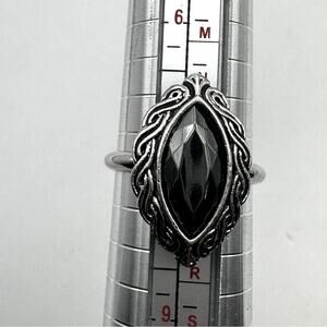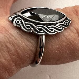 Avon Vintage Hematite Marquise Stone Celtic Twist Ring Silvertone faceted Sz 7.5