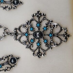 Avon Vintage Hematite and Faux Turquoise Necklace and Earrings Set