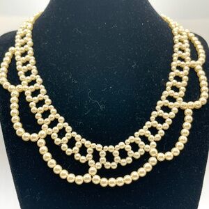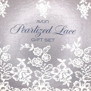 Avon vintage Pearlized Lace Gift Set in original box. Faux pearl acey look collar with pierced surgical steel post earrings. The necklace has a short drop of about 7 1/2" with an additional 3" of extender chain accented with faux pearls. Hook closure. The faux pearls are in good condition. Comes in the original box which is in generally good condition with some wear, particularly on the edges. Pre-owned. Please ask if you have questions.