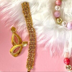 Avon Vintage Women’s Gold/Rhinestones Earrings & Bracelet Combo