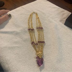 This elegant necklace features a stunning combination of goldtone and purple, perfect for adding a touch of sophistication to any outfit. Its intricate design is both timeless and versatile.