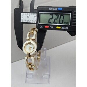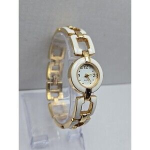 Avon White Enamel Gold Tone Link Bracelet Ladies Quartz Watch New Battery