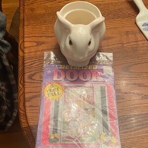 Charming white rabbit-shaped planter. Perfect for home decor. Add a plant for an Easter gift plus door hanger