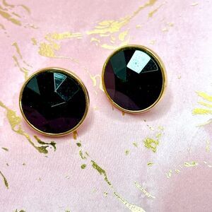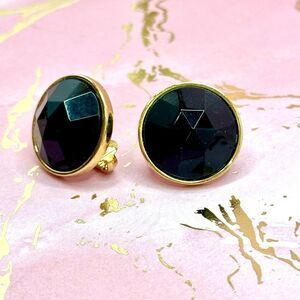 Avon Women's Vintage Goldtone Black Round Stone Clip on Earrings