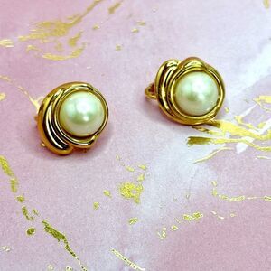 #pearlstudearrings #cliponearrings #vintageearrings #daintyearrings #goldandpearl