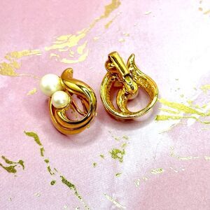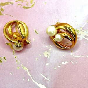 Avon Women's Vintage Goldtone Swirl Faux Pearl Clip on Earrings