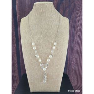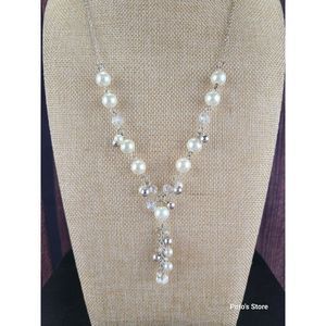 Avon Signed "NWT" Women's Faux Round Pearls and Crystals Silvertone Necklace Length 23" plus 3" extender