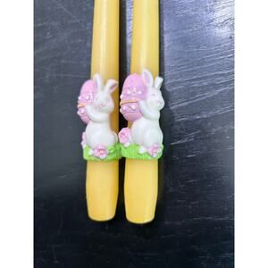 Avon- Yellow Easter Bunny with Egg- Yellow Taper Candle Set- 2 - Great Condition