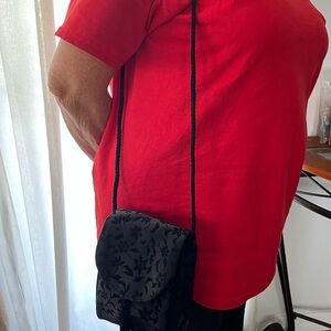 Avon Exclusives No longer Available. Black braided rope. Crushed velvet flowers accent design. Front snap closure. Black tassel accent on front.