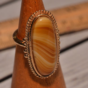 Avon large marbled gemstone gold plate ring size 4