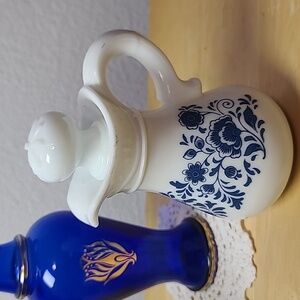 2 are Beautiful milk glass with delft blue pattern. One is Beautiful blue glass with gold accents.