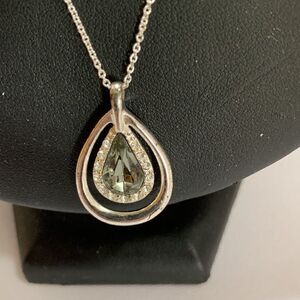 Avon silvertone teardrop necklace with rhinestones & gray topaz