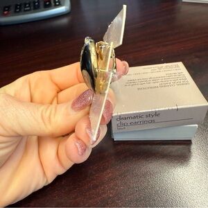 Avon vintage “Dramatic Style” Black and Goldtone clip Earrings NIB 1988