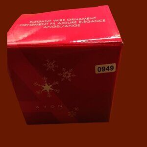 Avon wire christmas ornament angel gold color He has a trumpet and is decorated with beaded brand new open box from smoke and pet free home.