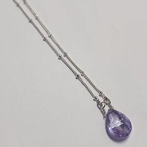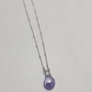 This elegant silver necklace features a stunning purple pendant, perfect for adding a touch of sophistication to any outfit. Ideal for both casual and formal occasions.