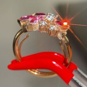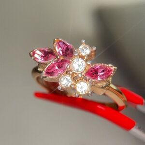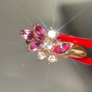 Avon Pink & White Rhinestones Ring Preowned Sz 7