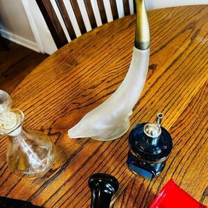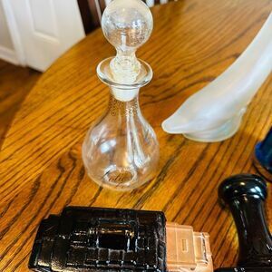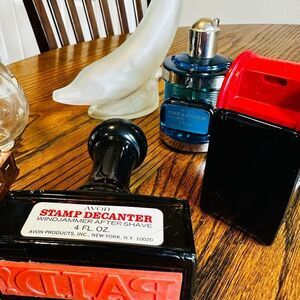 Avon Vintage Elegant Glass Decanter Set of 6 with Black and Red Accents
