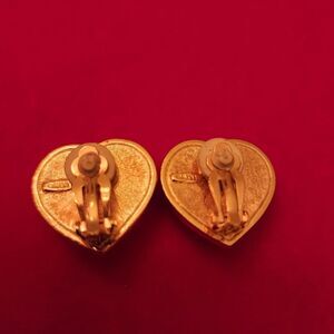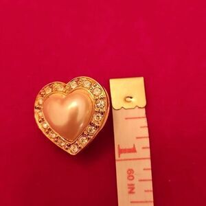 Avon Vintage Signed Gold Plated Pearl Rhinestone Clip-on Heart Earrings