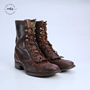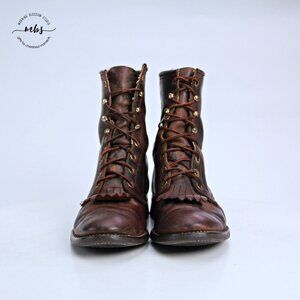 Avonite Hypalon Roper Lace Up Kilties Cowgirl Boots Brown Women 10.5*