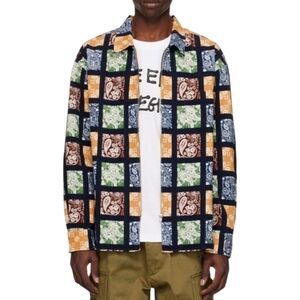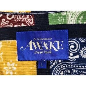 Awake NY Mens L Paisley Corduroy Zip-Up Shirt Jacket Black/Multi Flawless $240