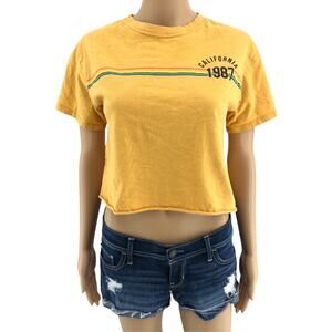 Awake SMALL Yellow Cold Crush California 1987 Crop Top Tee Short Sleeve Crew