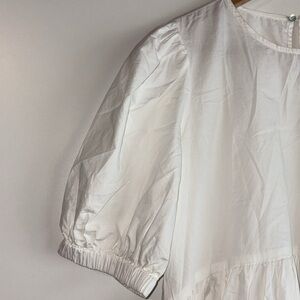 Smocked puff sleeve mini dress. 100% Cotton