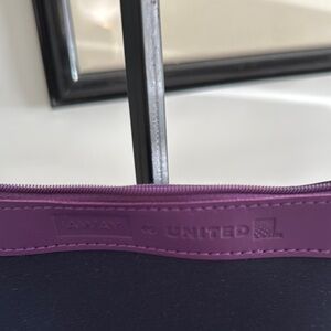 United collaboration with Away travel toiletries bag with amenities: non-slip socks (never used), dental kit, ear plugs, and sleep mask.