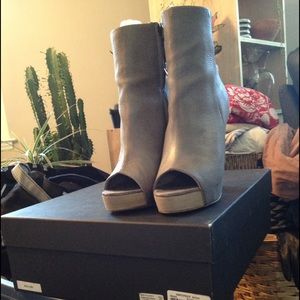 Seriously rad style. Google this unique find for professional shots! Color and speckled/pebbled leather is def unique. Hard for me to let go of! Worn once for maybe 2 hours. Left some stickers on bottom. Back part of heel is about 5". Zip closure goes almost all the way down to arch side of shoe. Note that the leather is a textured, slightly worn-in look. I have the box, let me know if you want it or not :) Euro sz 37.