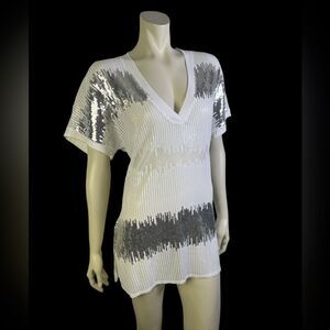 Awesome Bathing Suit Cover-up by INC NWT White/Silver Sequined Mesh Size Large