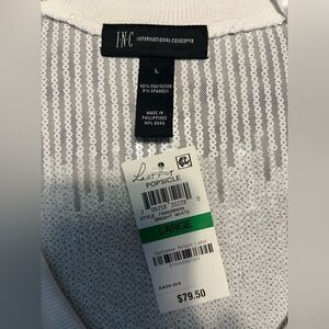 Eye-Catching swimsuit cover-up from INC is NWT. It’s sheer mesh with white and silver sequins. Super lightweight and easy to throw on! Made of 95% polyester and 5% spandex. The size large measures as follows: