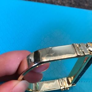 CC SKYE bracelet, gold cuff w/ black and white stone. Has magnetic and snap closer to make sure it stays on. Some small scratches on one side from wear, but not noticeable when wearing.