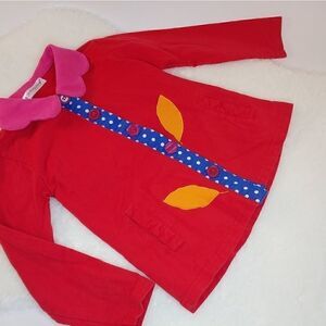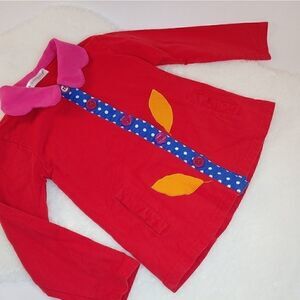 100% cotton flower collar jacket with polka dot button placket stalk.