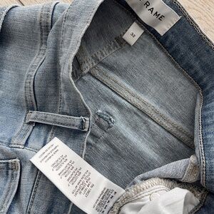 Amazing Frame 5-pocket denim jeans. Features a super soft cotton blend, vintage wash, an awesome boot cut silhouette, and a raw hem. These are perfect for styling and perhaps some of the softest jeans I’ve owned. Worn only twice and only selling because I need to downsize my denim collection. Comes as shown and comes sanitized prior to shipping.