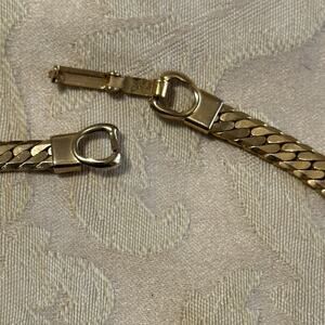 Awesome Gold tone Off White Enamel Collar Wide Herringbone Chain Necklace