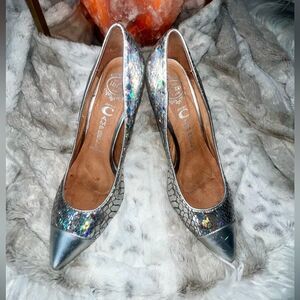 Awesome Holographic Silver Jeffrey Campbell Pumps, Size 8