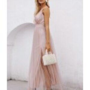 Awesome Jade Pure Fashion Celeste Evening Dress in Nude Pink Nude Underlay White Chiffon Style Overlay Size Small. Size tag has been removed.