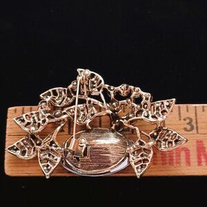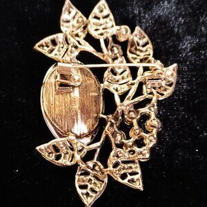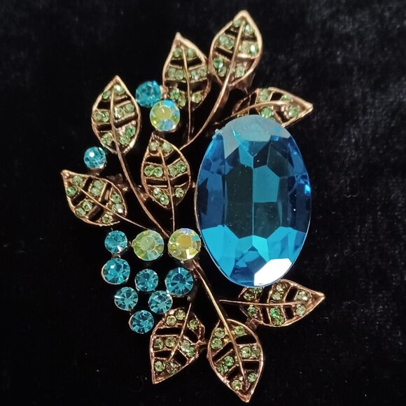 The center of this 3" brooch has a large Blue Rhinestone, that is surrounded by smaller blue rhinestones with a few