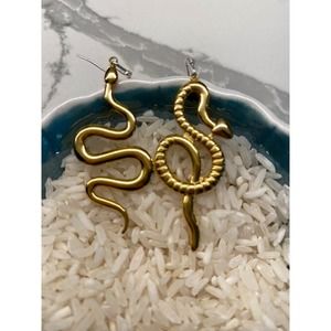 Perfect for both casual outings and formal occasions, these gold snake earrings effortlessly elevate any look with their timeless appeal. Whether you're attending a soirée or simply adding flair to your daily attire, these earrings are sure to turn heads and spark conversations wherever you go.