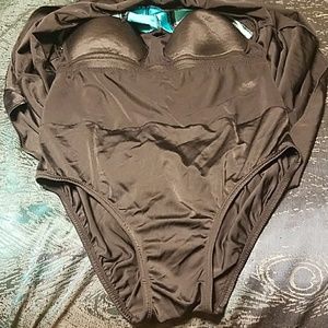Super flattering very well made swimdress by Longitude Women's. Built in bra and tummy control lining. Really comfortable and super adorable on.