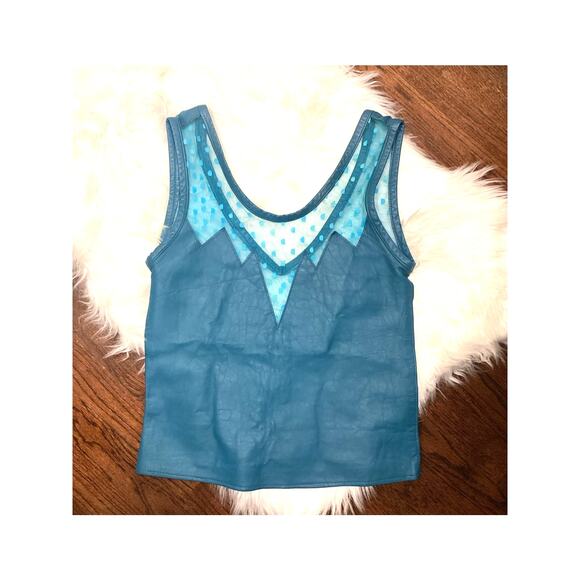 Awesome Teal Blue Cut Leather Sheer Mesh Back Rocker Vintage Sleeveless Top