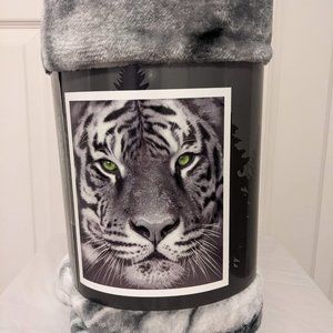 With plush polyester fabric and a grayscale white tiger design, this soft, cozy throw keeps you warm while snuggled under a wild jungle-themed scene. This blanket can also be used as a textured tapestry on a blank wall.