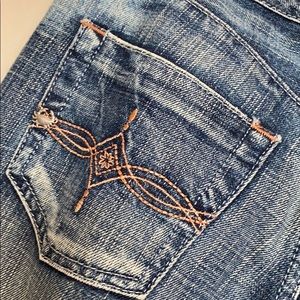 Awesome LTB by Little Big dark jeans with awesome design in the pockets. Size 25x32. Made in Turkey and purchased at a high-end boutique in Miami and they are by far my favorite jeans but they no longer fit. The hem is distressed on one leg but that is how they were designed. Made of soft, high quality jean fabric. I wish American jeans were made this well and with this kind of detail and fabric. Styled with Banana republic top sold separately. Smoke free home and immediate shipping. Enjoy!!