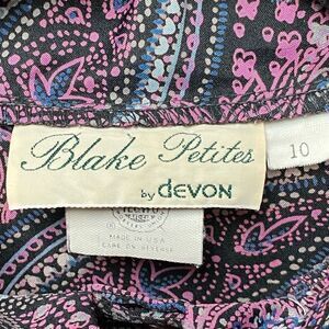 A very cool 70s piece in excellent condition. The colors are so vibrant and the neck ruffle can be removed. The material is a silk-like synthetic material. The size on tag is 10, but please see measurements of garment taken lying flat for true fit.