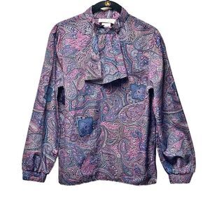 Awesome 70s Balloon Sleeve Paisley Blouse With Removable Neck Ruffle
