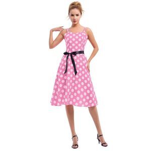 Awibmk Women Vintage 1950S 50S Plaid Polka Dot Swing Dresses Spaghetti Straps R