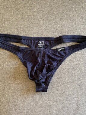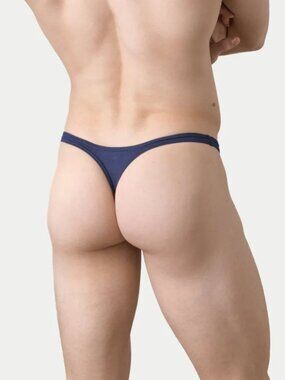 This is a men's Awry Lounge Thong - BRAND NEW - in navy blue. Super soft and comfortable, barely there fabric. 95% lyocell, 5% spandex.