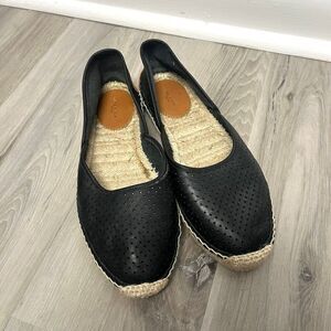 Excellent used Condition Women’s Rag & Bone Del Rey Black and Tan Perforated Leather Slip On Espadrille Flats in EU Size 38.5