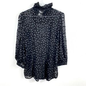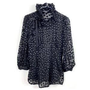 AX Armani Exchange Ruffle Collar Polka Dots Sheer Blouse In Black