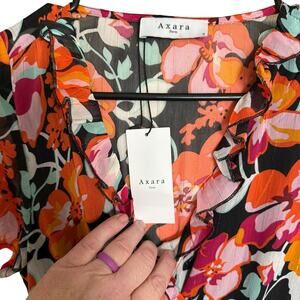 Axara Paris Maxi Dress Floral Orange Ruffle Small Bohemian Boho Hippie